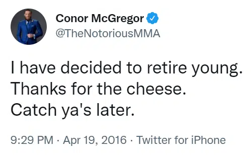 או הצהרת הפייסבוק הפואטית הגבולית שבאה בעקבותיה? דברים מבריקים. אבל החלקלקות הזו, העדינות הזו אבדה לזמן. אין ספק, המברשות של מקגרגור עם החוק היו דגל אדום. בשנים האחרונות נדמה שכאוס מקיף את מקגרגור, למרות הצלחתו הכלכלית עם ויסקי אירי מספר 12 ומיזמים אחרים.
