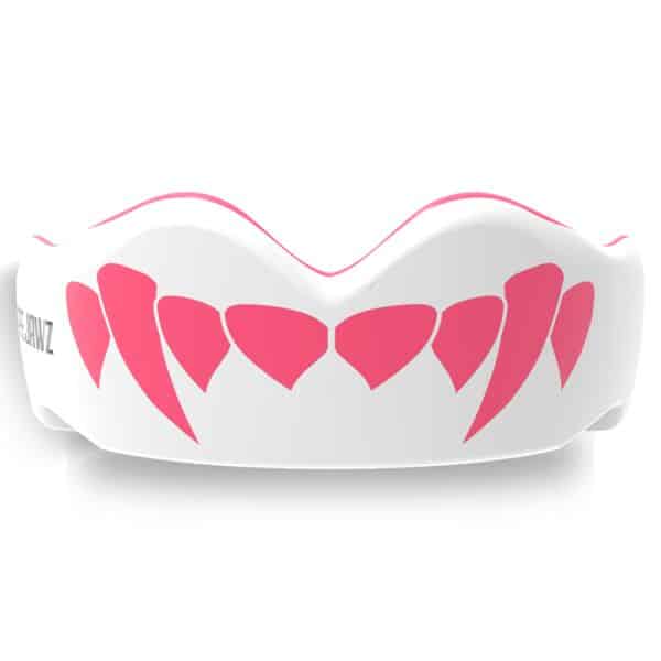מגן שיניים דגם דרקולה בצבע וורוד ולבן Safejawz Pink Fangz Mouthguard Extro White and Pink