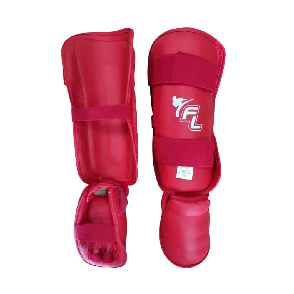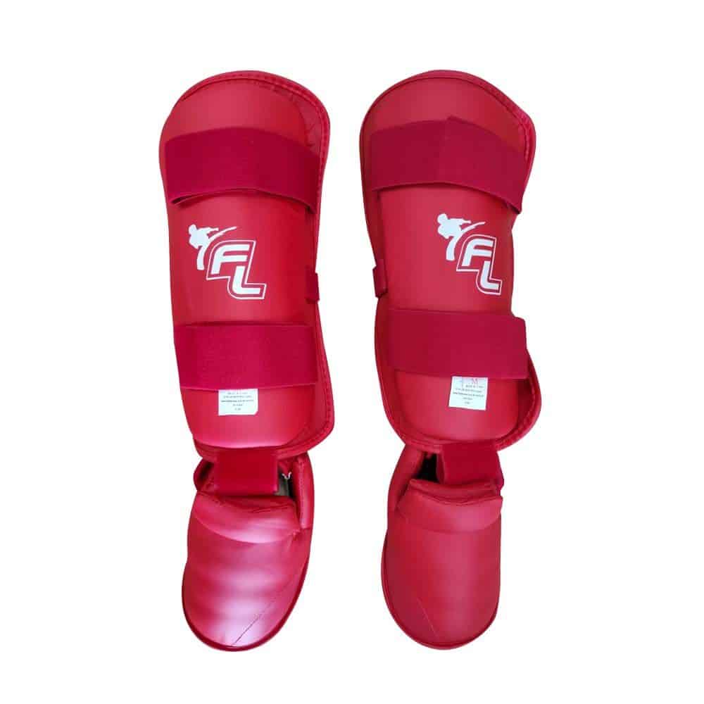 מגני רגליים לקראטה Apex, נועדו להעניק הגנה אופטימלית למתאמנים ולמתחרים בקראטה. עשויים חומר PU איכותי ועמיד, עם ריפוד פנימי הסופג חבטות ומגן על השוק וכף הרגל. רצועות סקוץ' מאפשרות התאמה מושלמת לרגל ומעניקה יציבות מירבית בזמן תנועה. ניתן להשתמש במגן כמגן מלא או להפריד את חלק כף הרגל או השוק לפי הצורך. בצבעים אדום או כחול – בהתאם לדרישות תחרות רשמית.