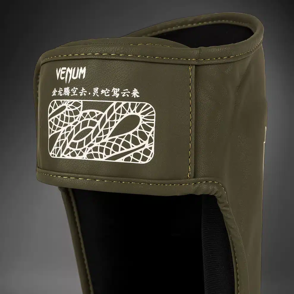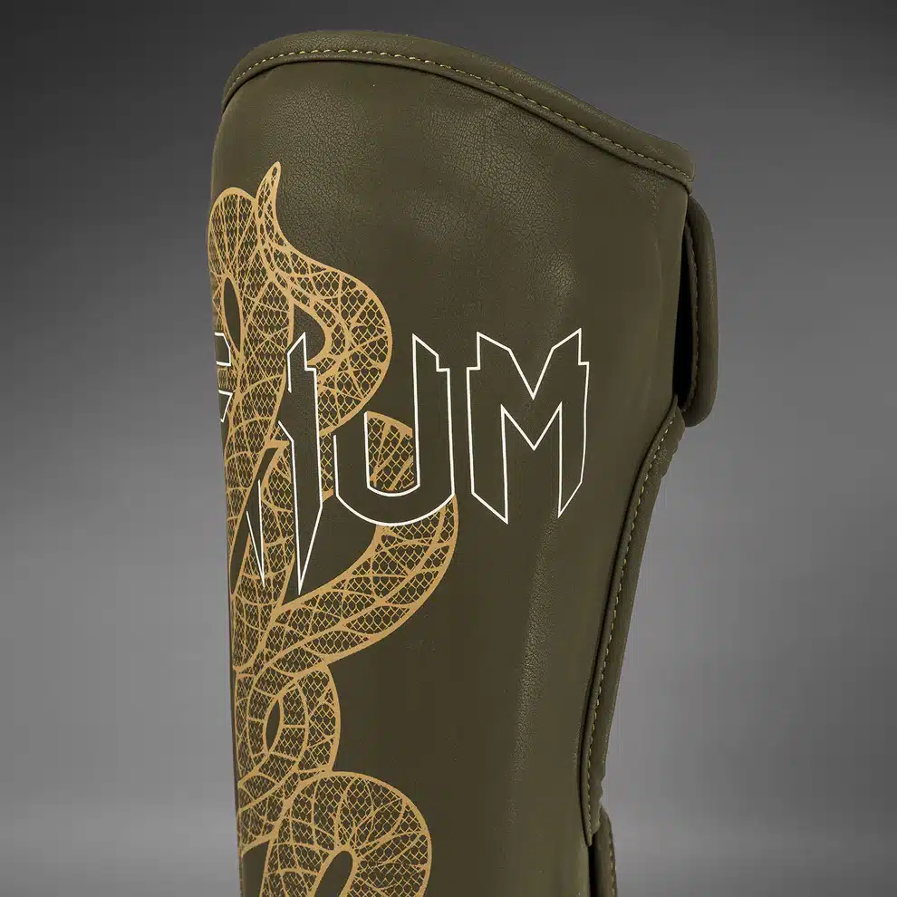 מגני רגליים ונום צבע חאקי ברונזה ושנהב דגם Venum Serpenti Shin Guards – Khaki/Bronze/Ivory