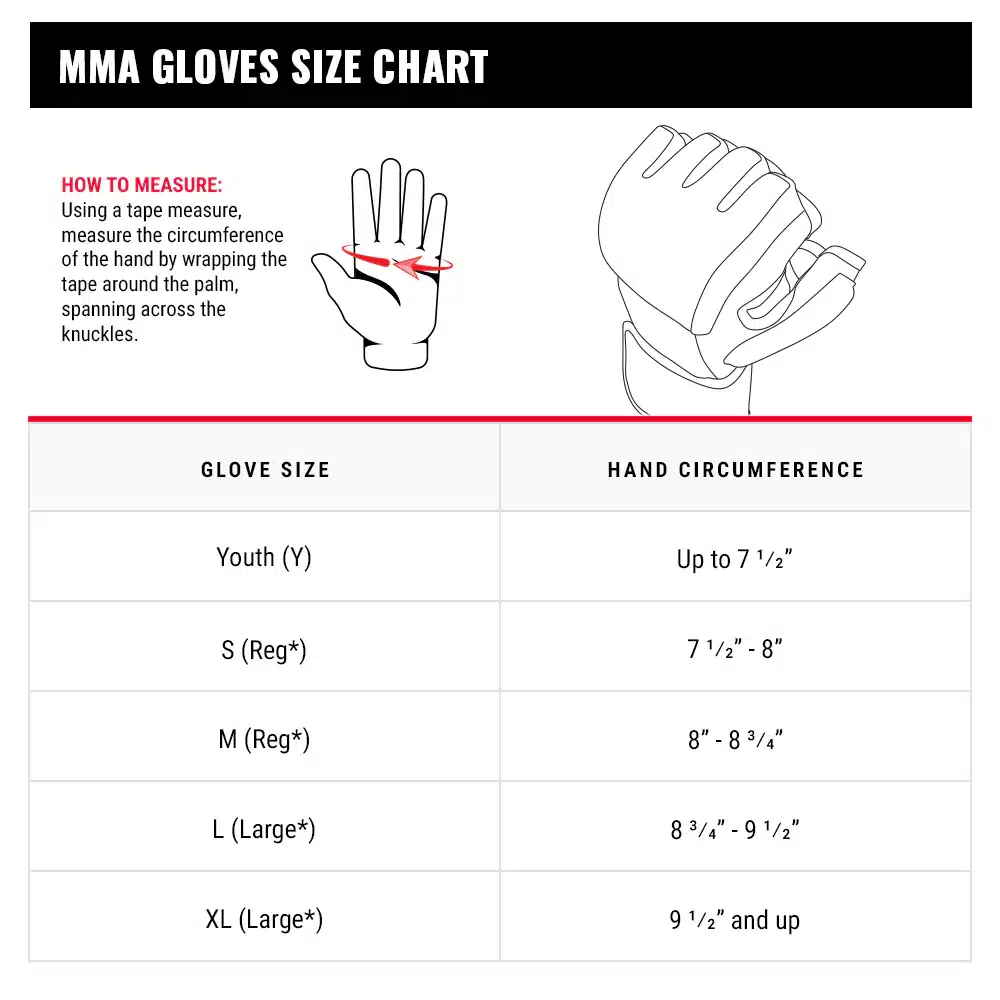 מידות כפפות MMA